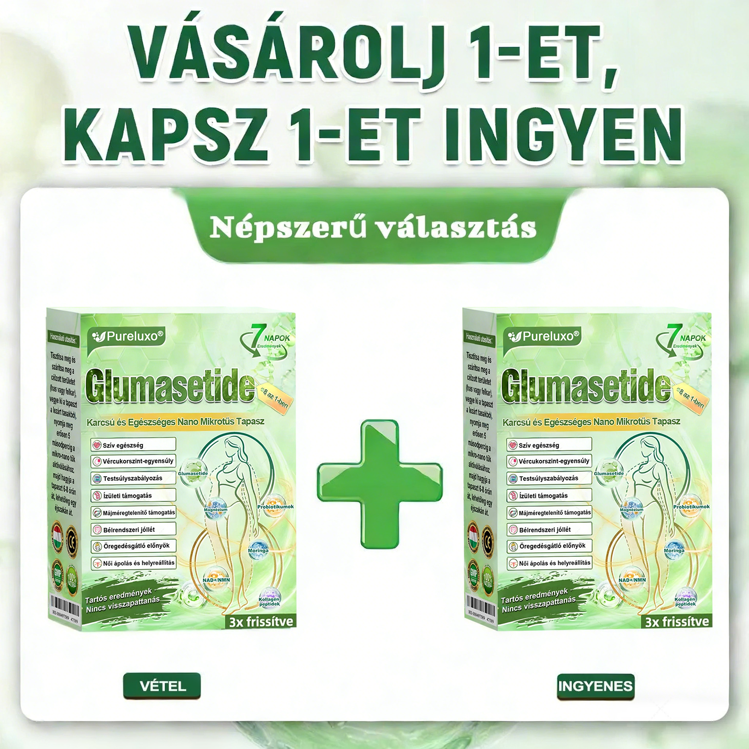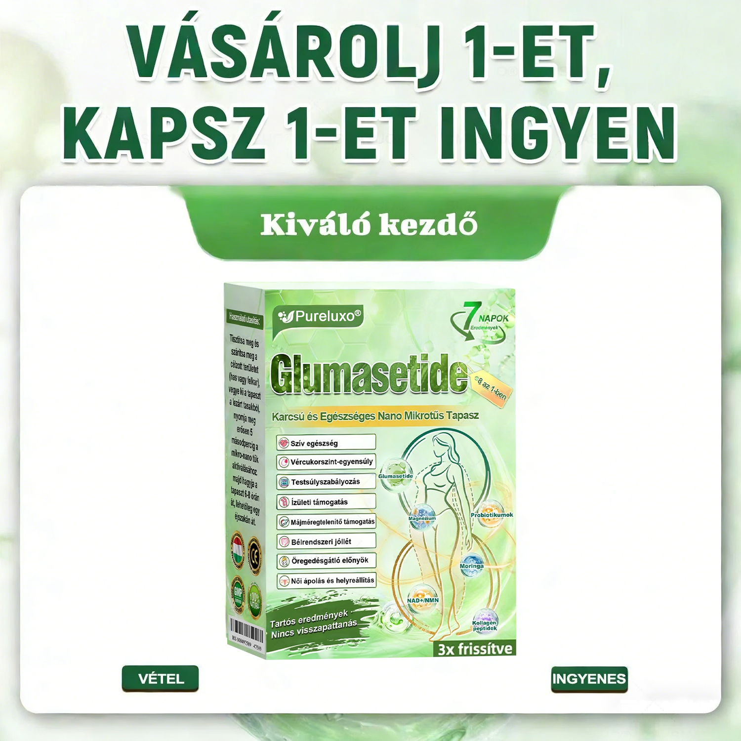PureluxoÂź Glumasetide 8 az 1-ben KarcsĂș Ă©s EgĂ©szsĂ©ges Nano MikrotƱs Tapasz: 98%-os felszĂvĂłdĂĄsi hatĂ©konysĂĄg, ĂĄtfogĂł ĂĄtalakulĂĄs a testsĂșlykontroll, valamint a mĂĄj-, bĂ©l- Ă©s bĆregĂ©szsĂ©g terĂ©n